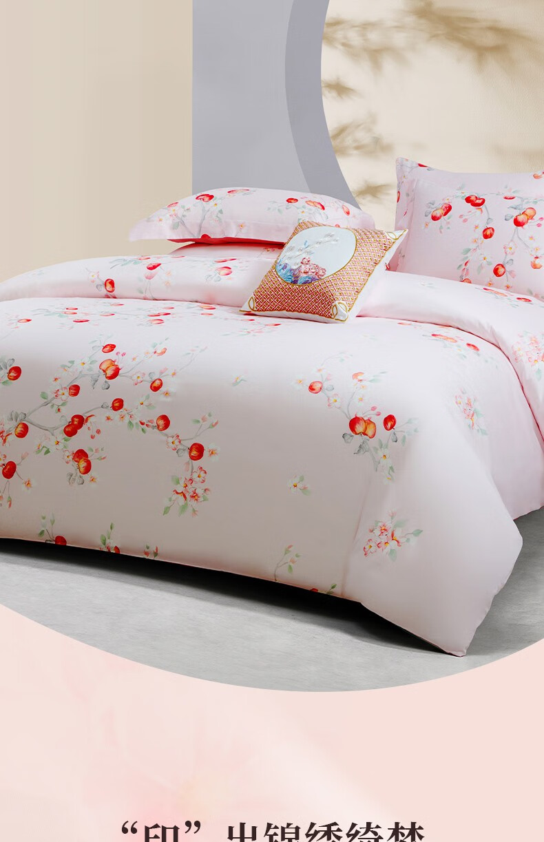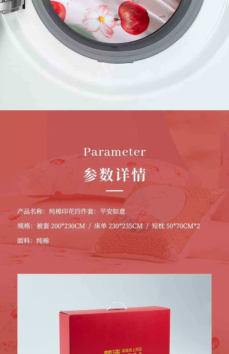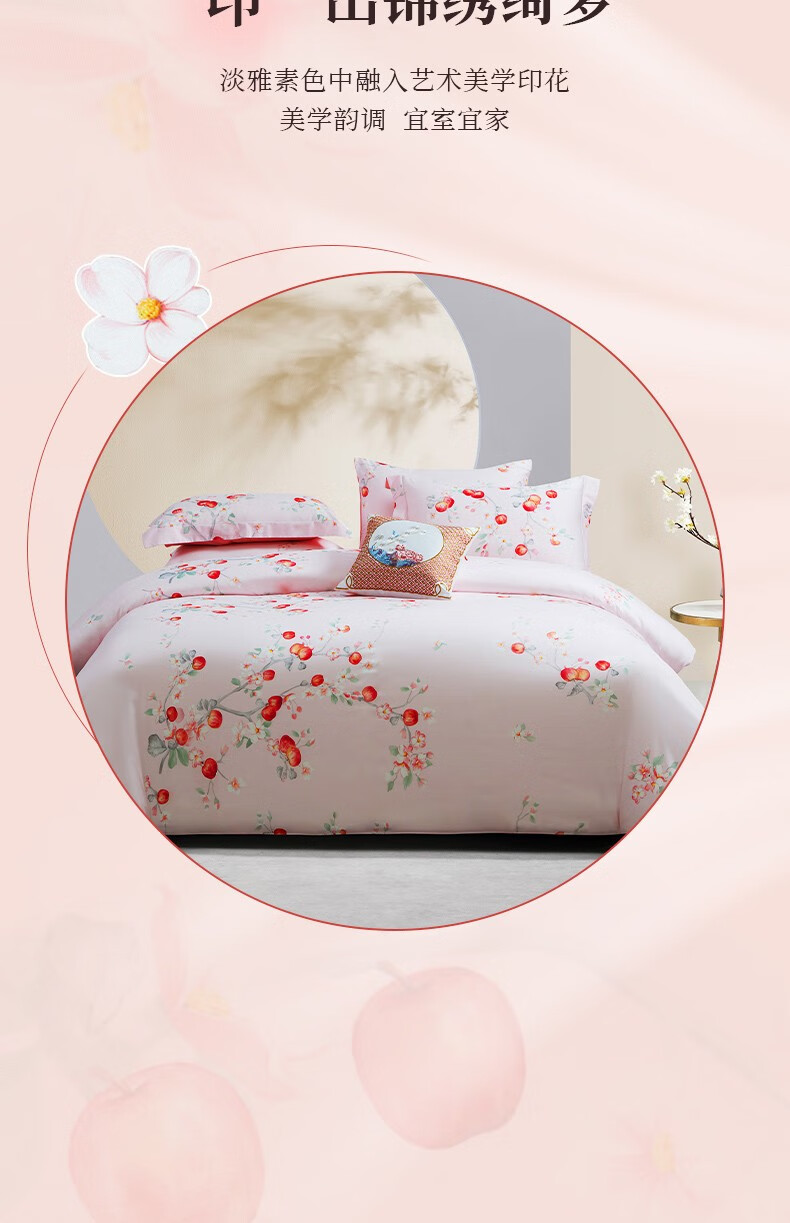 梦洁 纯棉印花床品四件套-平安如意 200×230cm