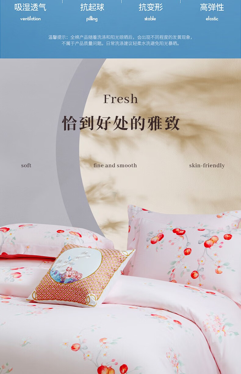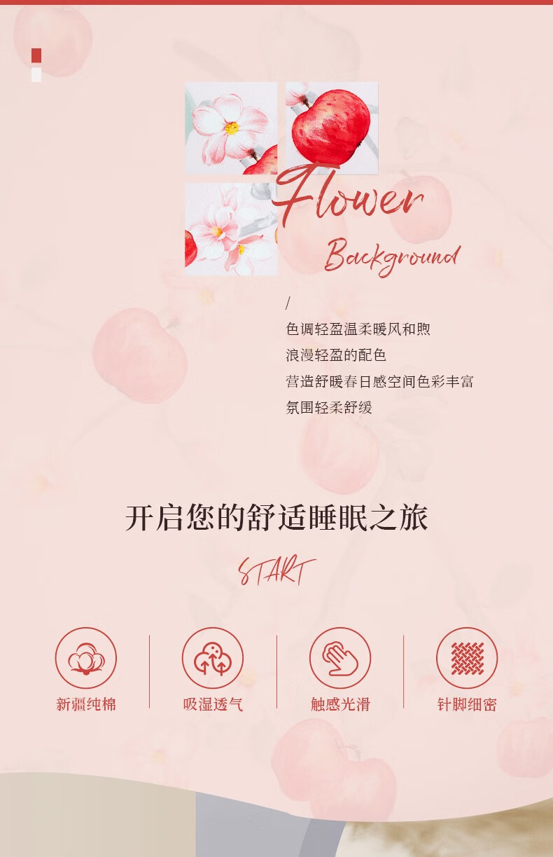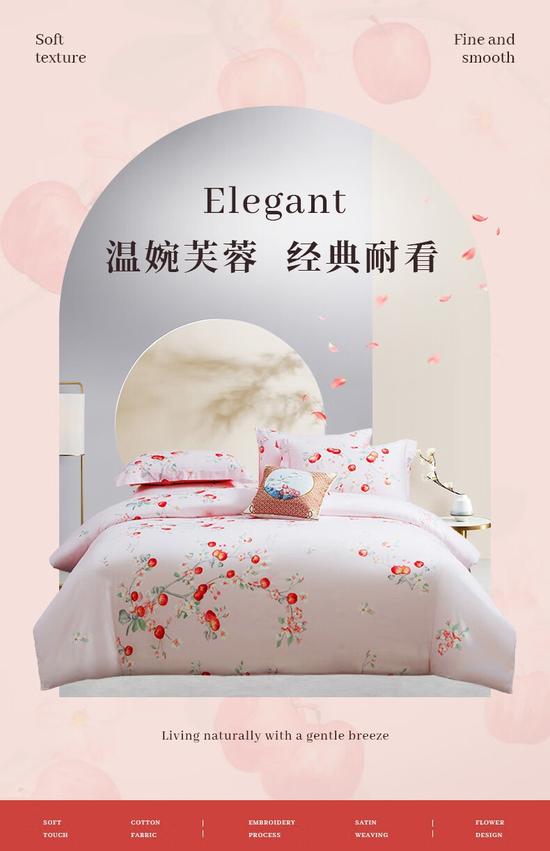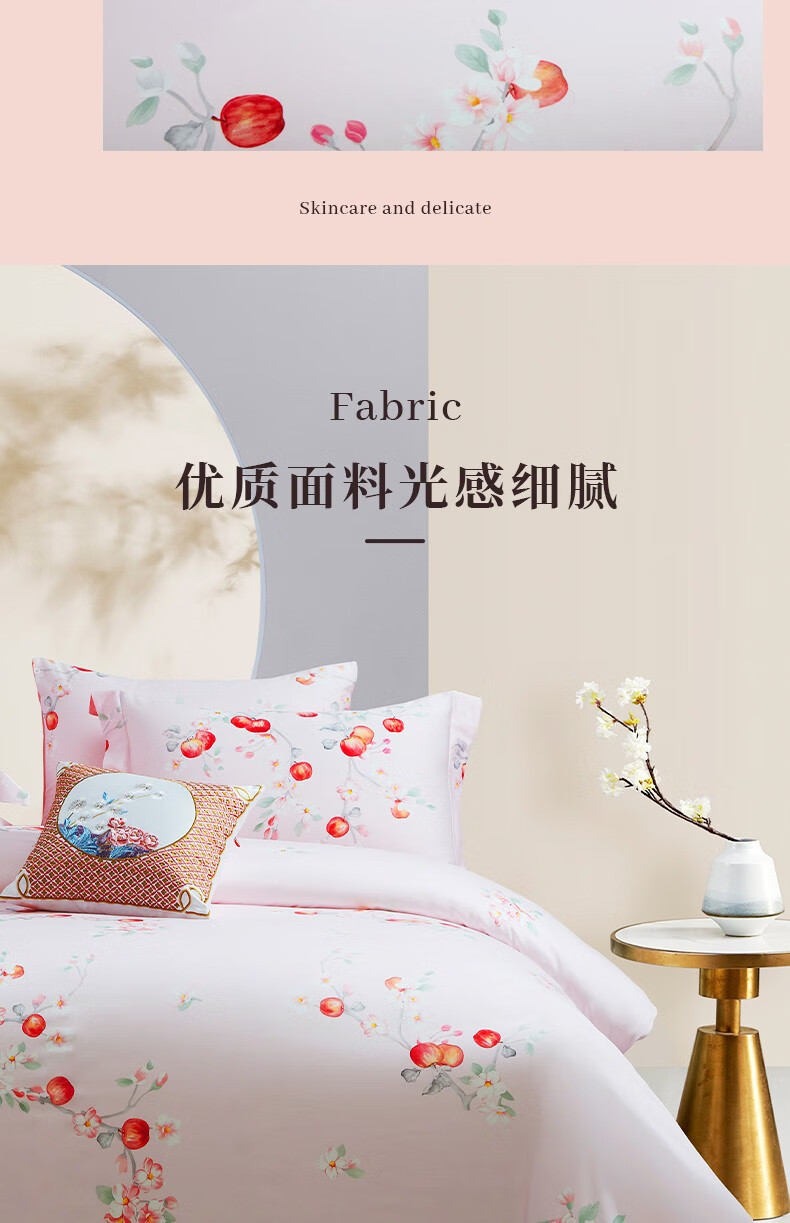 梦洁 纯棉印花床品四件套-平安如意 200×230cm